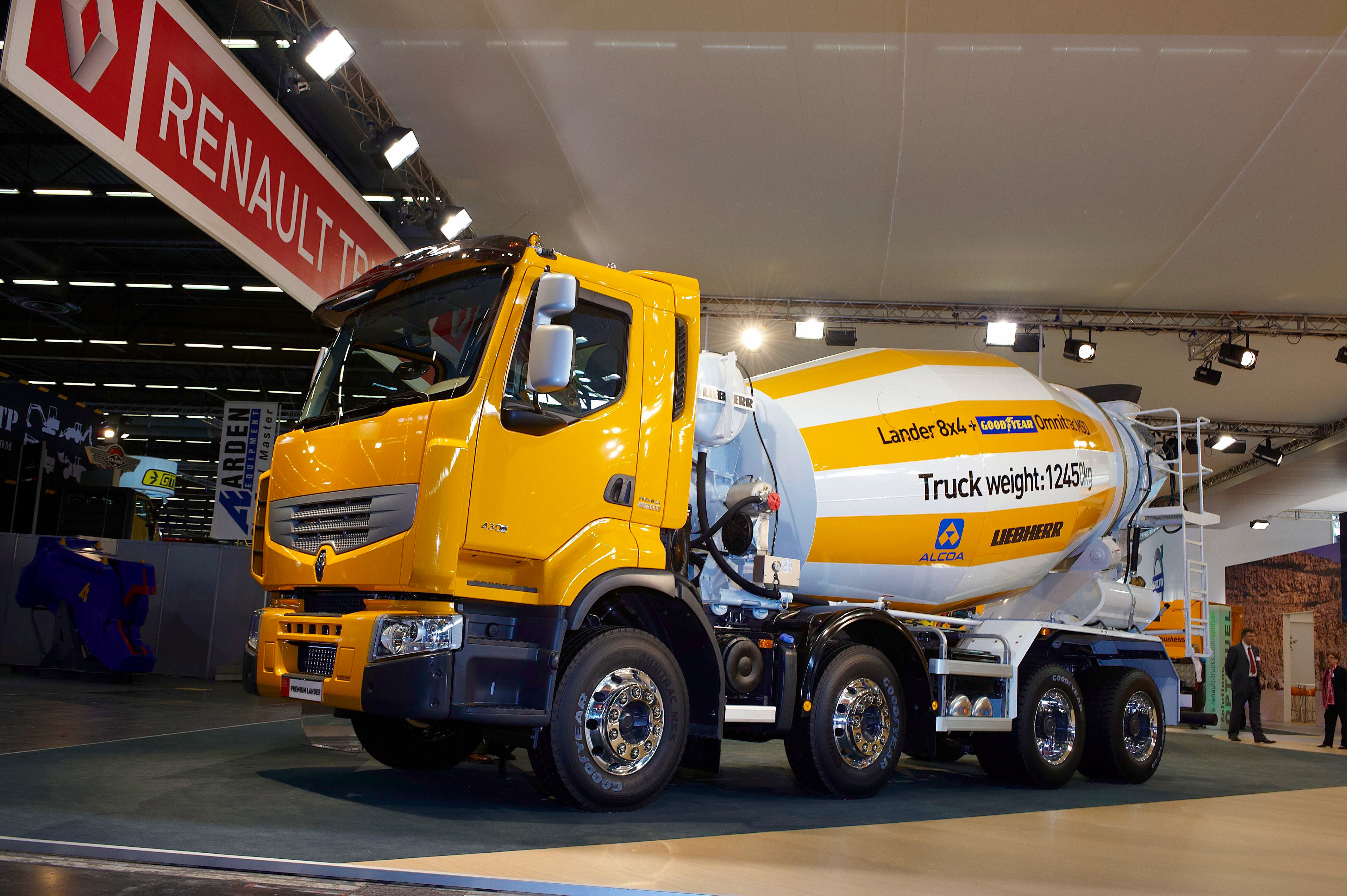 Alcoa Wheels und Renault Trucks haben ihre langjährige Partnerschaft mit einer neuen Zusammenarbeit unterstrichen. Durch den Austausch der zwölf 22.5×9.00 großen Aluminiumräder und der entsprechenden Reifen an allen Achsen des Extraleicht-Betonmischers Premium Lander 8×4 durch vier 22.5×9.00 messende Räder sowie vier 22.5×17.00 messende Räder von Alcoa sowie die entsprechenden Super-Single-Reifen an den Antriebsachsen wird ein Gewicht von insgesamt 261 Kilogramm eingespart, wovon 196 Kilogramm auf die Alcoa-Räder zurückzuführen sind. Bei einem Fahrzeug mit vier Achsen und mit Stahlrädern in der Größe 22.5×9.00 beträgt die Gewichtsersparnis nach der Umstellung auf Aluminiumräder mit vier Rädern in der Größe 22.5×17.00 sowie den entsprechenden Reifen an den Antriebsachsen sogar mehr als 475 Kilogramm.