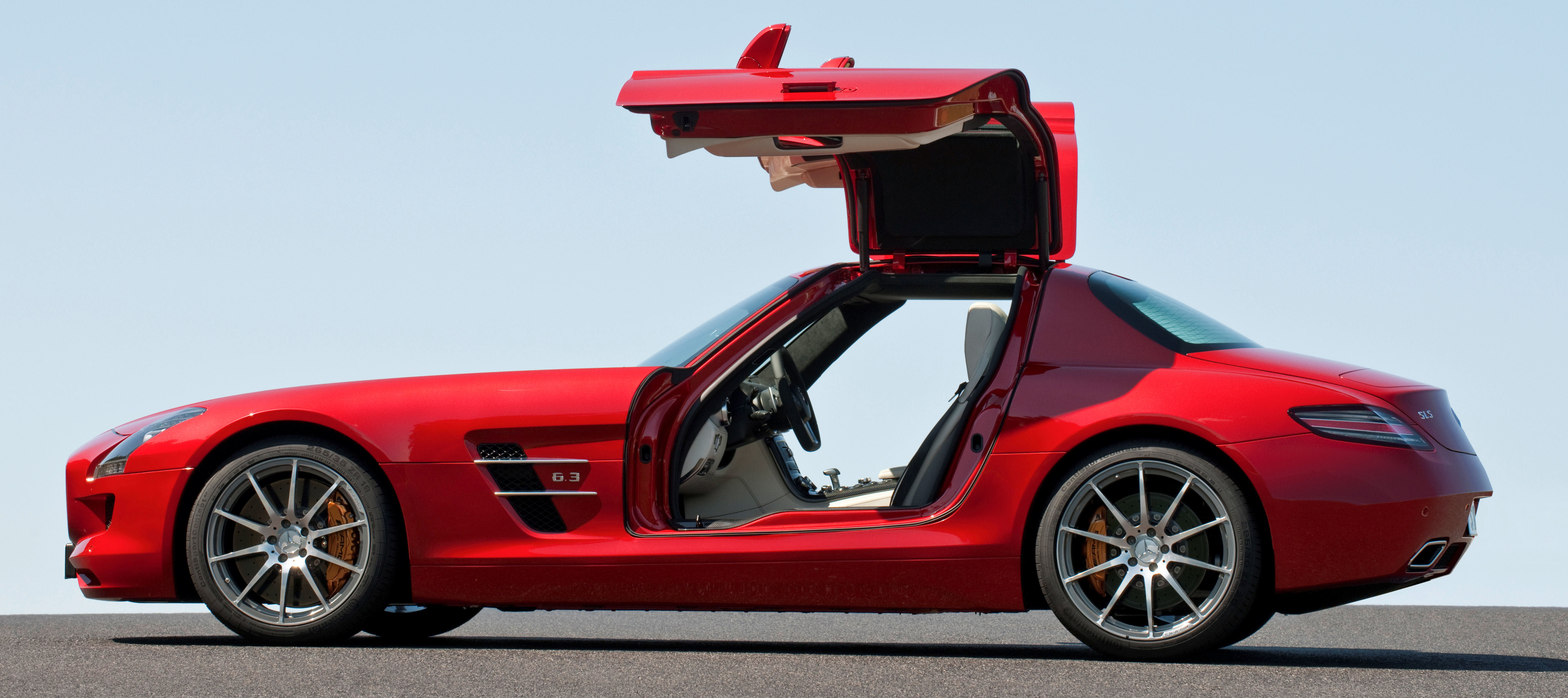 Auf der IAA in Frankfurt/Main wird sich der Supersportwagen SLS AMG von Mercedes-Benz in neuem Design, mit konsequentem Leichtbau und herausragenden Flügeltüren präsentieren und setzt konsequent auf Leichtbau, so auch bei den Rädern: Gewichtsoptimierte AMG-Leichtmetallräder nach dem “Flow Forming”-Verfahren in 9,5×19 Zoll vorn und 11×20 Zoll hinten reduzieren die ungefederten Massen und steigern Fahrdynamik und Federungskomfort. Neben den serienmäßigen AMG-Leichtmetallrädern im 7-Speichen-Design stehen auf Wunsch Räder im 5-Doppelspeichen-Design und Schmiederäder im 10-Speichen-Design zur Wahl. Exklusiv für den SLS AMG entwickelte Reifen in 265/35 R19 (vorn) und 295/30 R20 (hinten) sorgen für beste Performance. Serienmäßig ist ein Reifendruckkontrollsystem zur permanenten Überwachung aller vier Räder mit radindividueller Anzeige im Display.