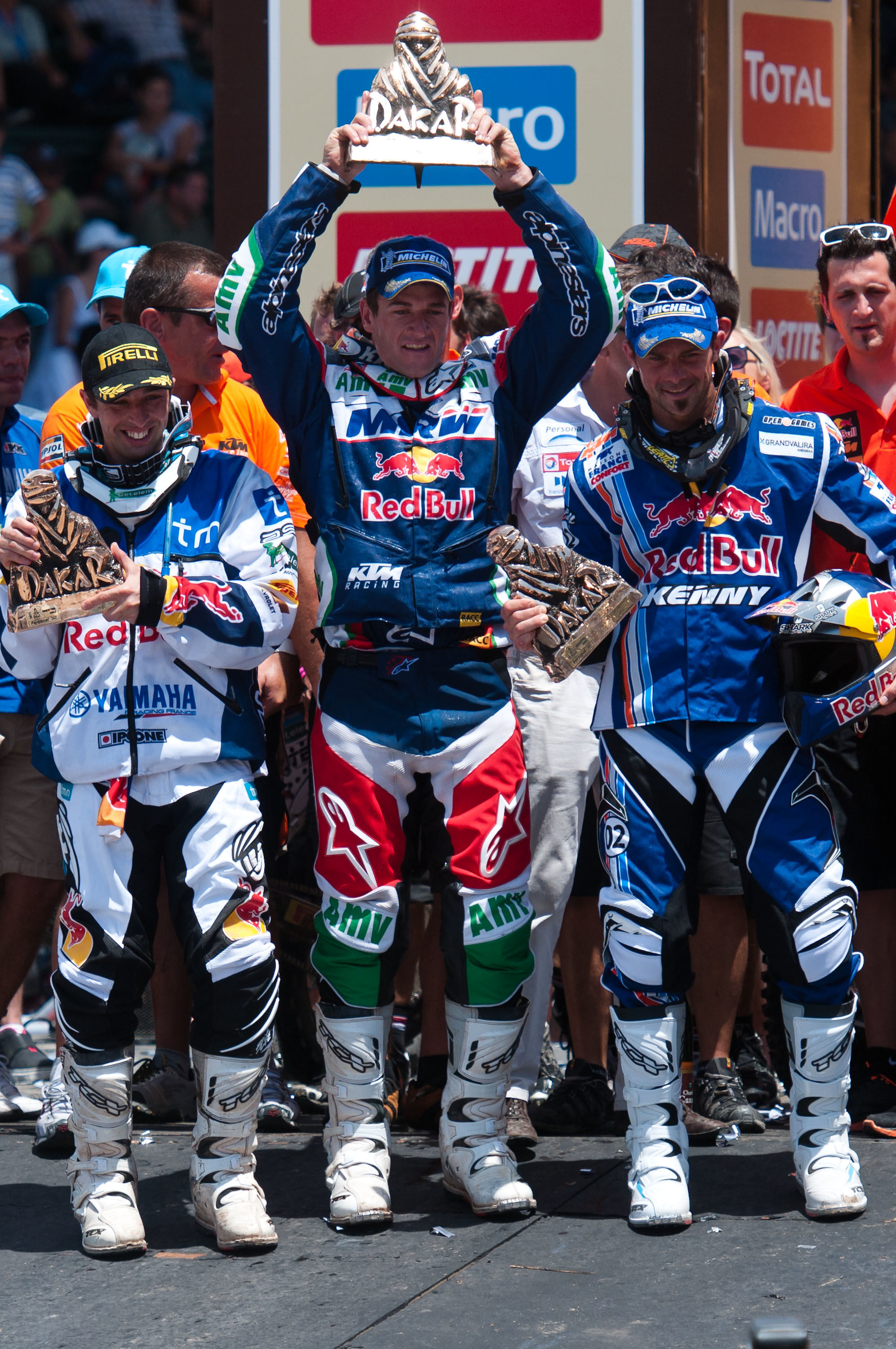 Nicht nur der auf der Dakar siegreiche KTM-Motorradfahrer Marc Coma, sondern auch der Zweite Cyril Despres, der Viert-, der Fünftplatzierte sowie weitere Biker vertrauten auf Reifen der dominanten Marke Michelin. Aufs Podium hat es aber auch Helder Rodrigues mit seiner Pirelli-Bereifung noch zu guter Letzt geschafft, indem er mit Aprilia-Fahrer Chaleco Lopez die Plätze tauschen und die Phalanx der Michelin-Fahrer durchbrechen konnte. dv