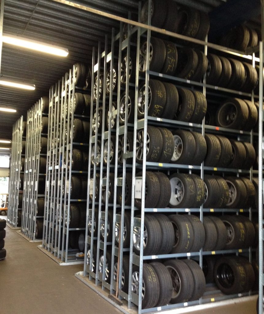 Bedient wird das Räderlager mit einem Höhenbediengerät, was den jeweiligen Monteur mit einem Radsatz in wenigen Augenblicken bis in die siebte Räderebene auf circa fünf Meter hebt. „Das Höhenbediengerät erleichtert unseren Mitarbeitern die Arbeit und sie sparen obendrein noch Zeit beim Ein- und Auslagern der Kundenräder“, so Geschäftsführer Röder. Auf einer Grundfläche von 298 Quadratmetern werden jetzt 1.880 Radsätze = 7.520 Räder eingelagert. Besonders begeistert war der Auftraggeber nicht nur vom reibungslosen Ablauf des Bauvorhabens, sondern auch von der Qualität der gelieferten Reifenregale: „Schon beim Anfassen der Reifenregale spürt man die Stabilität und Tragkraft der Regale und hat das Gefühl, sich genau für das richtige Reifenregalsystem entschieden zu haben.“