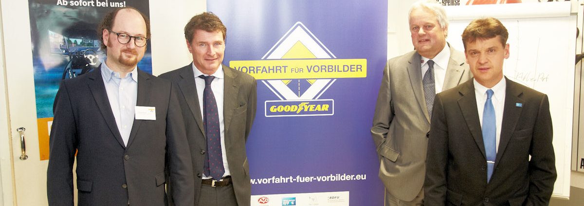 Unter dem Motto „Vorfahrt für Vorbilder“ startet Goodyear gemeinsam mit dem Automobilclub von Deutschland (AvD), dem TÜV Hessen, der Arbeitsgemeinschaft der Technischen Prüfstellen (TÜV | Dekra arge tp 21) und dem Bundesverband Deutscher Fahrschulunternehmen (BDFU) eine neue Initiative zur Verbesserung der Verkehrssicherheit von Fahranfängern. Hintergrund sind die Ergebnisse einer repräsentativen Goodyear-Studie aus dem vergangenen Jahr. Danach werden viele Eltern als Autofahrer ihrer Vorbildfunktion gegenüber ihren Kindern durch Fehlverhalten am Steuer nicht gerecht. Deshalb lädt Goodyear mit seinen Partnern jetzt alle Eltern, aber auch alle anderen Autofahrer, zur Teilnahme an einem von Verkehrsexperten eigens für die Onlineinitiative entwickelten Vorbild-Selbst-Check ein. Unter www.vorfahrt-fuer-vorbilder.eu können die Teilnehmer prüfen, inwieweit sie Vorbilder im Straßenverkehr sind. Gleichzeitig besteht hier die Möglichkeit, die aktuelle theoretische Führerscheinprüfung der Klasse B versuchsweise zu absolvieren. Die Aktivierung der Initiative erfolgt hauptsächlich über Social Media, aber auch über weitere Kanäle – darunter lokale Gesprächsrunden. Im Rahmen einer Auftaktveranstaltung in einer Hanauer Fahrschule wurde die Kampagne gestern vorgestellt. Goodyear engagiert sich bereits seit mehreren Jahren für die Verbesserung der Verkehrssicherheit.