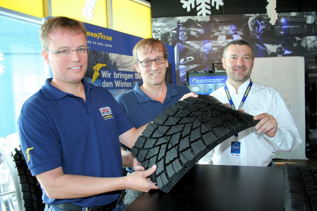In den vergangenen Jahren hat in Europa und hier insbesondere in Deutschland das Lkw-Winterreifensegment deutlich an Bedeutung hinzugewonnen. Zählten führende Hersteller vor zehn Jahren noch 200.000 Winterspezialisten, so waren dies im vergangenen Jahr bereits 400.000. Der DACH-Markt steht dabei grob für ein Drittel dieses Marktes und Deutschland im DACH-Markt wiederum grob für die Hälfte, liegt demnach bei rund 60.000 bis 70.000 Lkw-Neureifen jährlich, die speziell für die kalte Jahreszeit konstruiert wurden, so Michael Locher, Marketingdirektor Nutzfahrzeugreifen im DACH-Markt. Für dieses wachsende Marktsegment bietet Goodyear jetzt ein umfassend erneuertes Portfolio an: die Ultra-Grip-Max-Reifen. Nachdem der Hersteller erst kürzlich den Ultra Grip Max S für die Lenkachse und den Ultra Grip Max D für die Antriebsachse eingeführt hatte, ist das Sortiment nun mit dem neuen Ultra Grip Max T komplett. Der Trailerreifen biete ausgezeichnete Seitenstabilität und optimalen Grip bei Schnee, wie der Hersteller am Freitag anlässlich der Produkteinführung am Rande des Truck Grand Prix’ auf dem Nürburgring betonte. Gemeinsam mit den erst kürzlich eingeführten Ultra-Grip-Max-Reifen S und D sowie den 2013 eingeführten KMax- und FuelMax-Reifen bietet der Hersteller nunmehr eine umfassende Max-Reifenserie an. Während die neuen Profile für die Zugmaschine seit Kurzem erhältlich sind, kommen die neuen Trailerreifen ab September in den Handel.