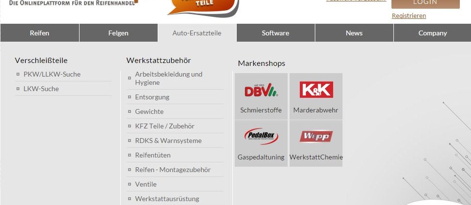 Die Reifenhandelsplattform Tyre24.de bietet schon seit Ende des vergangenen Jahres – nach einer ausgiebigen Testphase – ein umfangreiches Sortiment an Autoteilen unter der Kategorie „Verschleißteile“ an. Neben Reifen, Rädern, Werkstattzubehör stehen dort Bestände von rund vier Millionen Kfz-Teilen bereit. Die Palette dort reicht von Abgasanlagen und Bremsteilen bis hin zu Karosserieteilen und Zubehör wie Anhängeradapter oder Radzierblenden. Die Plattformkunden können aus einer Produktpalette im Gesamtwert von 9,5 Milliarden Euro wählen, die rund 100 Lieferanten aus ganz Europa auf Abruf bereitstellen; wöchentlich werden Bestellungen im vierstelligen Bereich getätigt.