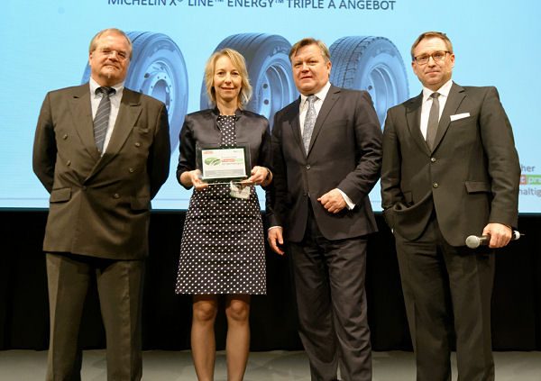 Die im Huss-Verlag erscheinende Zeitschrift Transport hat Michelin für seine Lkw-Reifen des Typs „X Line Energy“ mit dem „Europäischen Transportpreis für Nachhaltigkeit 2016“ ausgezeichnet. Für den Reifenhersteller ist dies demnach bereits das zweite Mal, dass er in der Kategorie Reifen und Reifendienste – eine von insgesamt 16, in denen ein entsprechender Preis vergeben wird – die Nase vorn hat. „Wir freuen uns sehr über den erneuten Klassensieg“, sagt Simone Loosemann, Leiterin Marketing Nutzfahrzeugreifen für die DACH-Region (Deutschland, Österreich, Schweiz) bei dem Reifenhersteller. „Seit jeher gehören Innovationen zur DNA des Unternehmens. Mit diesen Reifen stellen wir erneut unter Beweis, dass Michelin für nachhaltige Mobilität steht. Wir können unseren Kunden auch weiterhin versprechen, dass unsere Produkte sowohl wirtschaftliche, ökologische als auch sicherheitsrelevante Leistungen optimal kombinieren“, ergänzt sie. Michelin zufolge ist der „X Line Energy“ der erste Lkw-Reifen, der auf allen Achsenpositionen eines Lastzuges hinsichtlich des EU-Reifenlabelings die Kraftstoffeffizienzklasse „A“ erreicht. Dank eines besonders energieeffizienten Aufbaus und als innovativ beschriebener Gummimischungen erziele dieser Reifen bei gleichzeitig guter Haftung auf nassen und glatten Straßen einen geringen Rollwiderstand und somit Kraftstoffeinsparungen, die internen Simulationen zufolge für einen 40-Tonnen-Sattelzug bei bis zu rund einem Liter pro 100 Kilometer liegen sollen. cm