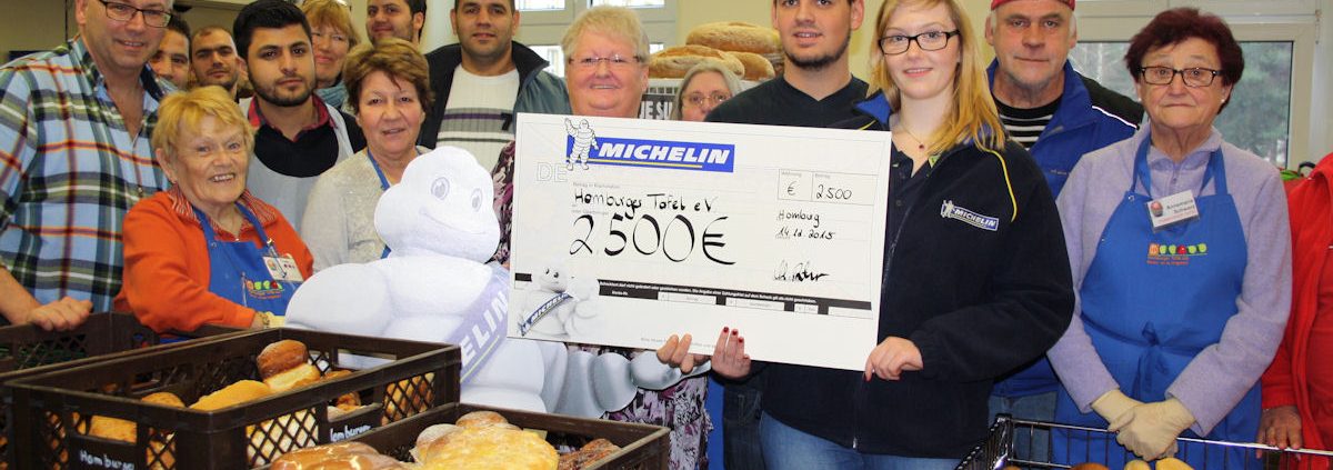 Auszubildende des Michelin-Reifenwerks in Homburg haben heute einen Spendenscheck in Höhe von 2.500 Euro an die Homburger Tafel überreicht. Gesammelt wurden die Spenden bei einem von den Auszubildenden organisierten Adventsflohmarkt im Michelin-Werk. Über ihre Einkäufe spendeten die Michelin Mitarbeiter so insgesamt 2.000 Euro für den guten Zweck. Die Werkleitung erhöhte anschließend den Betrag auf 2.500 Euro. „Wir freuen uns über das Engagement der jungen Mitarbeiter, weil es unseren Wert ‚Achtung vor dem Menschen’ ganz praktisch mit Leben erfüllt. Es ist für uns als Unternehmen auch selbstverständlich, dass wir uns für die Region und die Menschen, die hier leben, verantwortungsvoll einsetzen und deshalb die Summe aufstocken“, erläutert Cyrille Beau, Werkleiter.