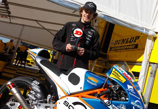 Schon im Herbst vergangenen Jahres hatte Dunlop den Moto3-Fahrer Philipp Öttl zum Gewinner seines „#ForeverForward”-Wettbewerbes gekürt – jetzt ist dem Deutschen auch die Siegertrophäe übergeben worden. Der zugehörige Wettbewerb war von der Marke, die das Moto2- und Moto3-Klassement des Motorrad-Grand-Prix exklusiv mit ihren Reifen ausrüstet, vergangene Saison ins Leben gerufen worden, um damit die erfolgreichste Aufholjagd bei den Rennen bzw. die beim Zieleinlauf meisten gegenüber der Startaufstellung gutgemachten Plätze zu würdigen. Öttl ist der erste Preisträger dieses Wettbewerbs, der dieses Jahr fortgesetzt werden soll.