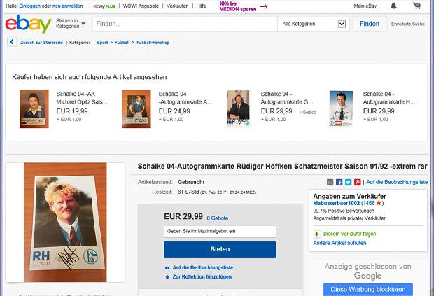 Schalke-04-Sammelkarte mit Höffken-Konterfei zu ersteigern