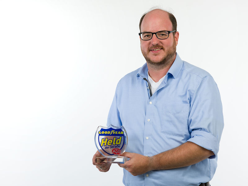 Sebastian Langen war Ende Mai gerade mit seinem Pkw in Essen unterwegs, als vor ihm ein Radfahrer schwer stürzte. Sofort reagierte der 41-Jährige und leistete Erste Hilfe. Für seinen durchdachten und mutigen Einsatz haben Goodyear und der Automobilclub von Deutschland (AvD) Sebastian Langen aus Essen zum „Held der Straße“ des Monats Juni 2019 gekürt.