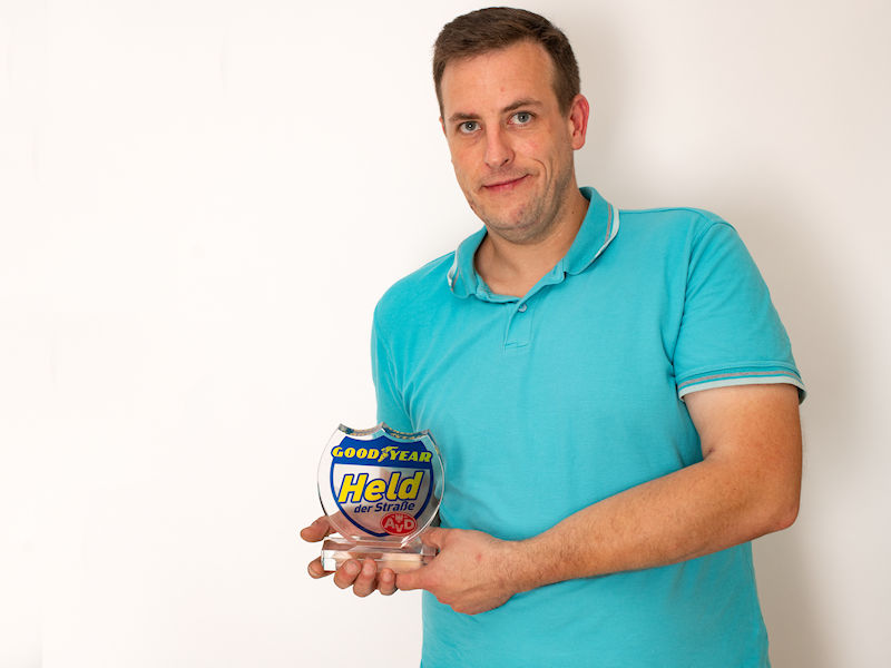 Philipp Heister aus Enger stand Ende Mai mit seinem Pkw an der Ampelkreuzung zwischen B 83 und Dorfstraße in Luhden, als er einen schweren Zusammenstoß zweier Autos beobachtete. Dabei wurde eine Frau aus ihrem Fahrzeug herausgeschleudert. Der 37-Jährige kam der Mutter und ihrem im Auto angeschnallten Kind sofort zu Hilfe. Für seinen durchdachten und mutigen Einsatz haben Goodyear und der Automobilclub von Deutschland (AvD) Philipp Heister aus Enger zum „Held der Straße“ des Monats Juli 2019 gekürt.
