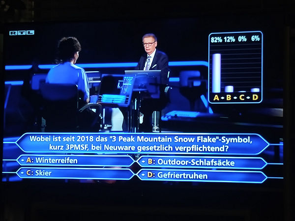 Kennen sich die Deutschen doch besser beim Thema Reifen aus als innerhalb der Branche gemeinhin gedacht? Diesen Eindruck hat zumindest die gestern bei RTL ausgestrahlte Fernsehsendung „Wer wird Millionär?“ vermittelt. Denn dabei musste eine Kandidatin von Moderator Günther Jauch bei der Frage danach, wo seit 2018 das „3-Peak-Mountain-Snow-Flake“-Symbol (3PMSF) bei Neuware gesetzlich verpflichtend vorgeschrieben ist, den sogenannten Publikumsjoker bemühen. Das bedeutet, dass die bei der noch vor den Corona-Einschränkungen aufgezeichneten Sendung im Studio sitzenden rund 220 Zuschauer durch Abstimmen beim Eingrenzen der richtigen von vier Antwortoptionen ihr helfen konnten. Was soll man anderes sagen als Jauch selbst, der von für ihn letztlich „erstaunlichen 82 Prozent“ sprach, die – völlig korrekt – für Winterreifen votierten. Ergo scheint es zumindest mit Blick auf diesen speziellen Fall doch nicht ganz so schlecht um das Reifenwissen der Deutschen bestellt zu sein. Bleibt zu hoffen, dass angesichts des Themas (Winter-)Reifen zur Primetime in einem wohl recht reichweitenstarken TV-Kanal sich vielleicht der eine oder andere Verbraucher an die bald anstehende Umrüstung auf Sommerreifen erinnert hat oder gar an eine etwaig anstehende Neuanschaffung schwarzer Gummirundlinge für sein Fahrzeug. christian.marx@reifenpresse.de