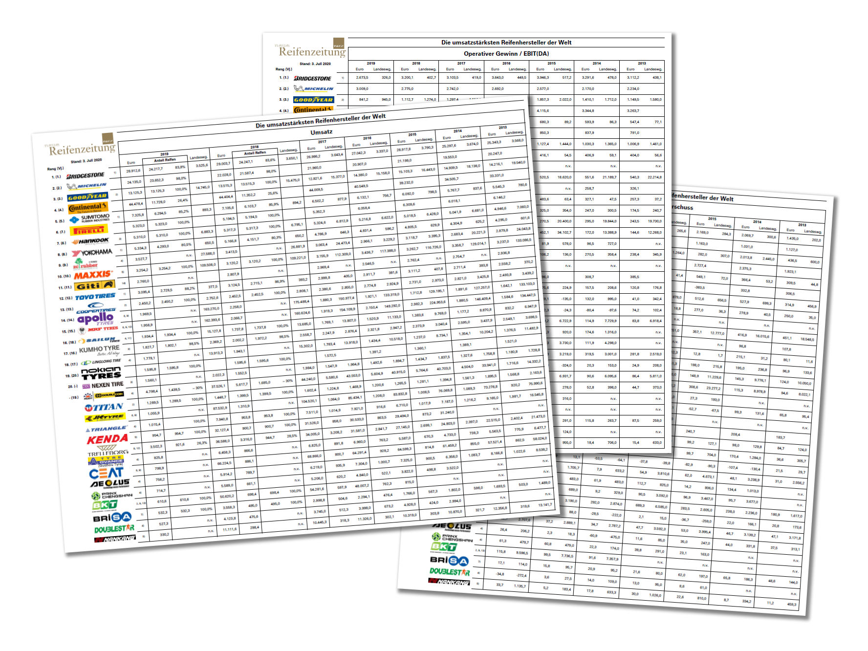 In unserem NRZ-Ranking zu den umsatzstärksten Reifenherstellern der Welt hat es auch im vergangenen Jahr wieder einige ‚Rangkämpfe‘ gegeben. Dabei haben erneut Pirelli und Hankook ihre Plätze getauscht, wobei zwischen den beiden Hersteller aktuell lediglich 13 Millionen Euro Jahresumsatz liegen; Pirelli und Hankook können demnach als gleich groß bezeichnet werden. Darüber hinaus hat Linglong aus China in unserem aktuellen NRZ-Ranking gleich zwei Hersteller überholt – Apollo und MRF, beide aus Indien – und steht damit bereits auf Rang 14. Nach 2016 ist unterdessen Nexen Tire erneut in die Top-20 vorgedrungen. Gleichzeitig scheinen sich in der Gruppe der vier umsatzstärksten Reifenhersteller aber zwei Wechsel abzuzeichnen. Während Michelin – zuletzt stark gewachsen durch die Camso-Übernahme – aktuell ‚nur‘ noch gut 550 Million Euro von Bridgestone entfernt auf Rang zwei in unserem NRZ-Ranking steht, ist der Abstand zwischen Goodyear und Continental auf den Rängen drei und vier ebenfalls schon auf 1,4 Milliarden Euro Reifenumsätze geschrumpft. Sollten sich die Entwicklungen der vergangenen Jahre entsprechend fortsetzen, würden in nicht allzu ferner Zukunft Bridgestone und Michelin sowie Goodyear und Continental vermutlich ihre jeweiligen Ränge tauschen. ab