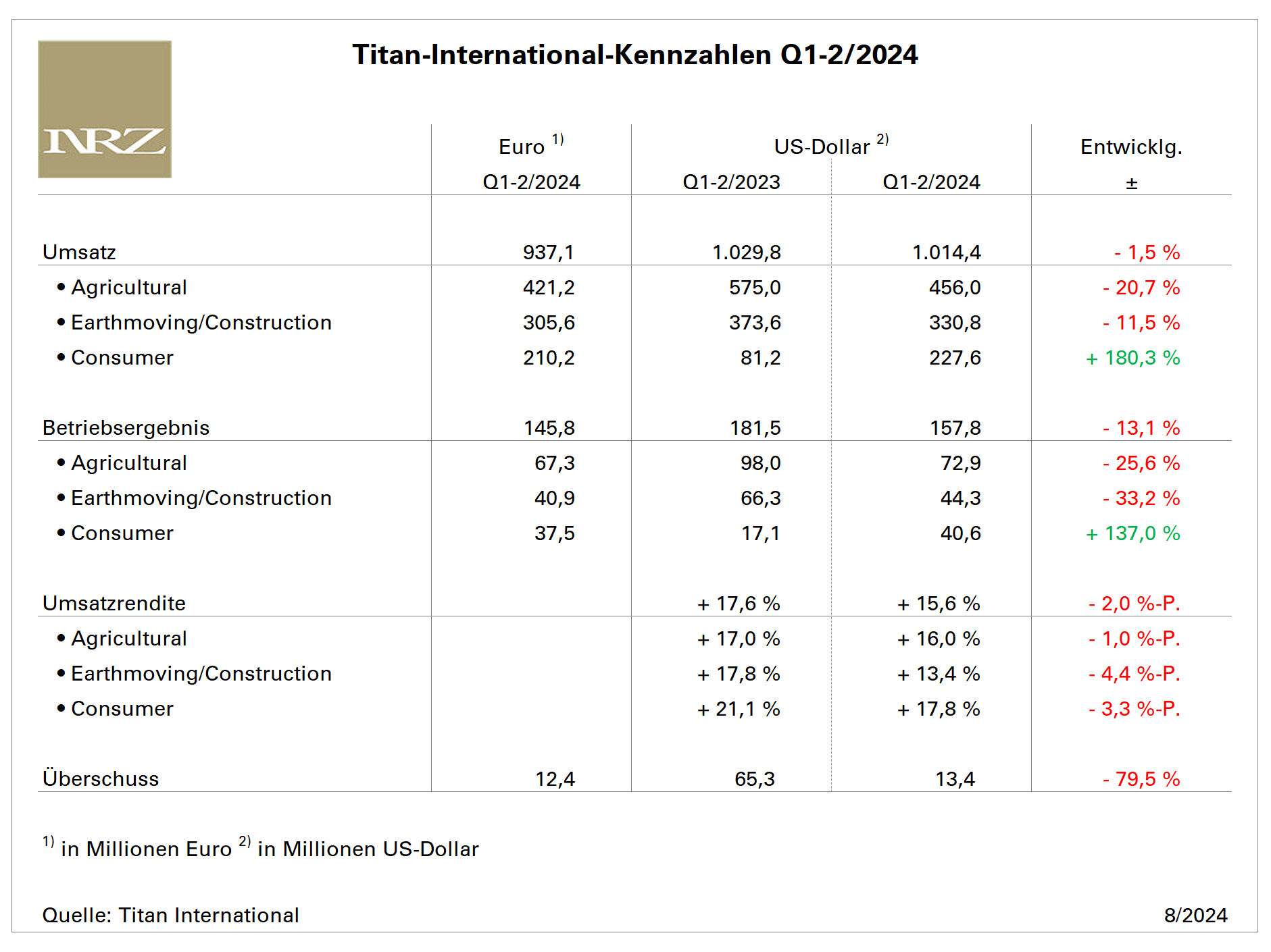 Titan International konnte zwar im ersten Halbjahr des neuen Geschäftsjahres Umsätze, Erträge und damit auch die Margen nicht halten. Dennoch betonten Paul G. Reitz, President und CEO, sowie CFO David Martin bei der Vorlage der aktuellen Geschäftskennzahlen, man sei wirtschaftlich und strukturell „bestens vorbereitet“ auf den Moment, an dem man die „zyklische Talsohle für unsere Branchen“ durchschritten haben werde. Bis dahin gelte es, die aktuelle Situation auszuwettern und sich vorzubereiten darauf, Umsätze zu steigern und Profitabilität zu beschleunigen, „sobald sich die Bedingungen verbessern, was sie letztendlich tun werden“. Dennoch konnte der US-amerikanische Hersteller all seine Margen im deutlich zweistelligen Bereich halten, die der Sparte Consumer sogar bei 17,8 Prozent. Dort ergab sich auch ein bemerkenswertes Umsatzwachstum von 180 Prozent. Der Grund: Neben den ATV-/UTV-Reifen der Marken Titan und Goodyear, die der Hersteller herstellt und vermarktet, hat Titan International Anfang dieses Jahres die Carlstar Group übernommen, ein weltweit tätiger Hersteller und Vertreiber von Spezialreifen und -rädern, dessen Zahlen nun ebenfalls Teil des Titan-International-Berichts sind.