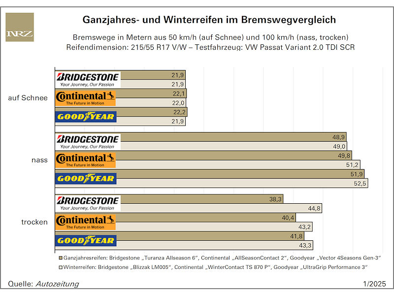 Gute Ganzjahresreifen stehen Winterspezialisten beim Bremsen nicht nach