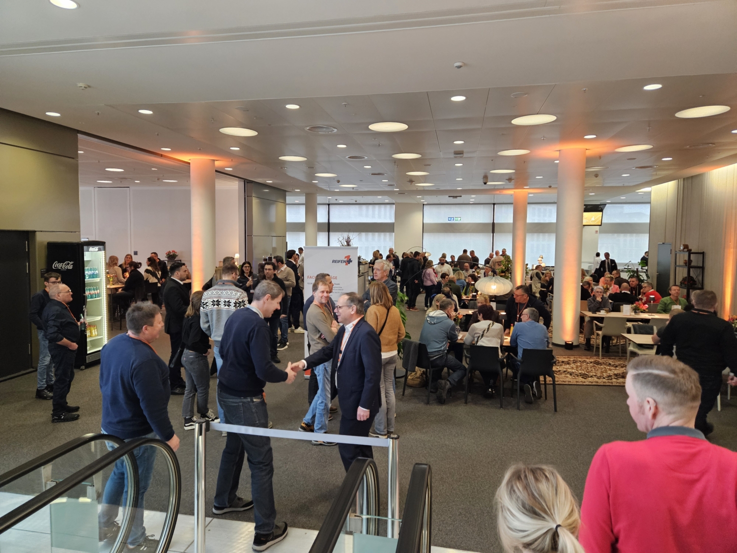 Die Gäste der Reifen1+-Partnertagung kommen im Kap Europa an. Johannes Kuderer, Geschäftsführer der Pneuhage-Gruppe, begrüßt sie (Bild: NRZ/Christine Schönfeld)
