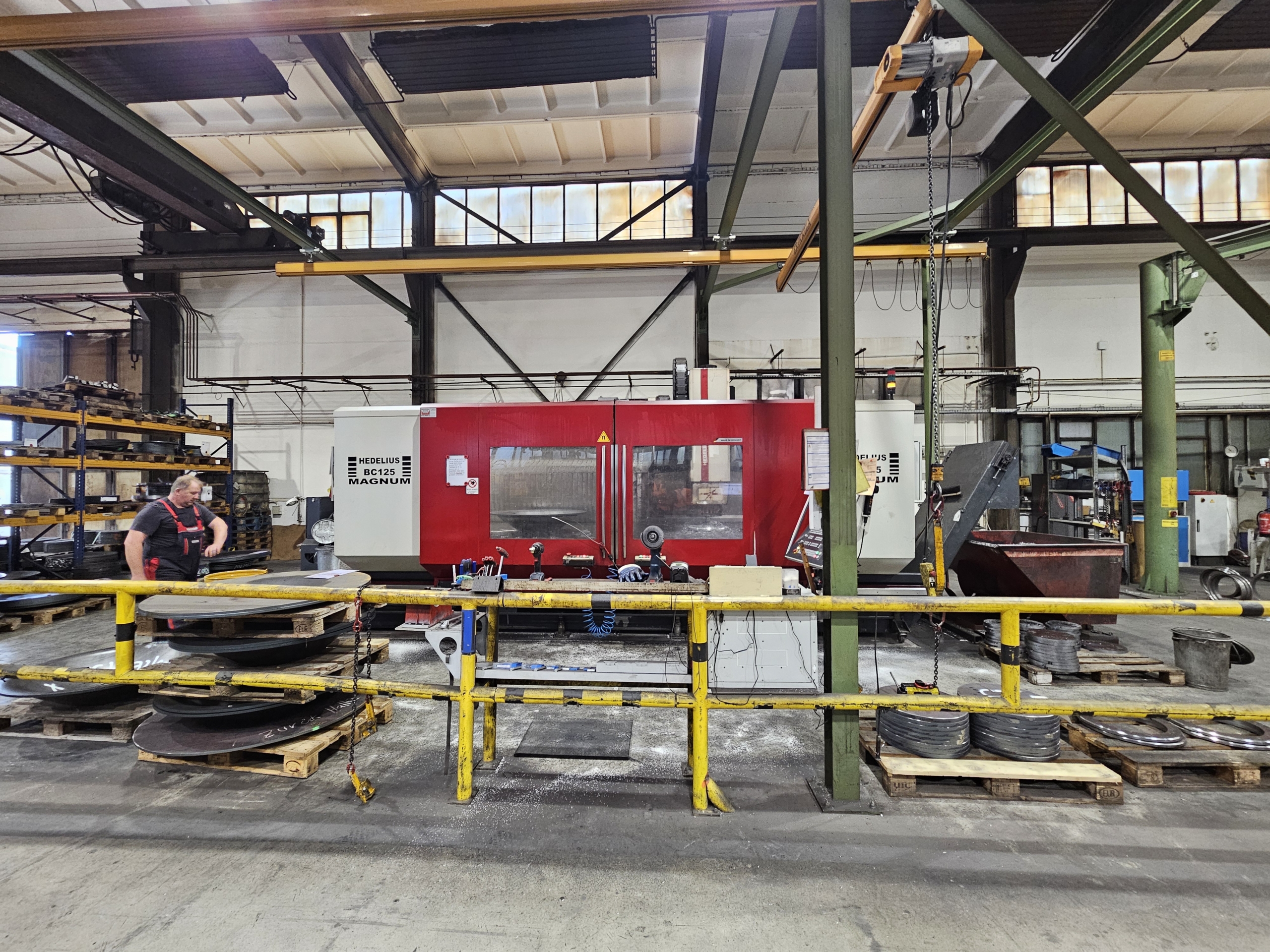 In der Fertigung in Groitzsch werden die Räder individuell für den Kunden gefertigt. Das heißt: Hier werden Felgenringe – und Schüsseln zusammengefügt. Bevor dies passiert, müssen die jeweiligen Schüsseln aber noch individuell gefertigt werden. Entweder müssen nur Lochkreise und Nabenausschnitte in bereits vorgefertigte Felgenschüsseln gefräst werden, oder aber es müssen noch aus Stahlronden zwischen zehn und 50 Millimeter dicke Felgenschüsseln gepresst und dann mit Nabenausschnitt und Lochkreisen versehen werden. Dies ist abhängig davon, wie groß die Felgenschüssel sein muss. Bis zu einer Einpresstiefe von 320 Millimetern werden die Schüsseln direkt von der hydraulischen 800-Tonnen-Presse in Groitzsch gefertigt. Alles, was tiefer ist, wird dazugekauft oder konstruktiv anders gelöst.