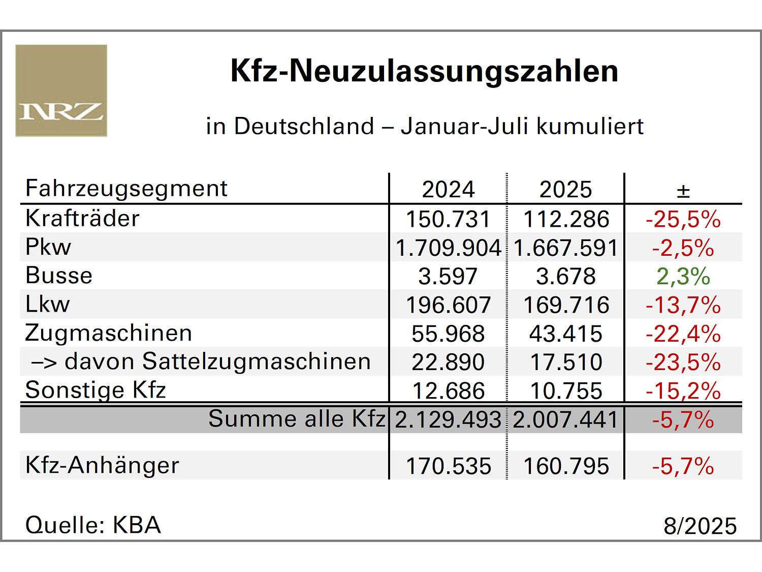 https://reifenpresse.de/wp-content/uploads/2025/08/KBA-Kfz-Neuzulassungen-2025-07.jpg11251500Christian Marxhttps://reifenpresse.de/wp-content/uploads/2025/09/Reifenpresse-Logo2025-01.svgChristian Marx2025-08-06 14:07:102025-08-06 14:07:10Starkes Juli-Neuzulassungsplus, Kfz-Markt dennoch weiter im Minus