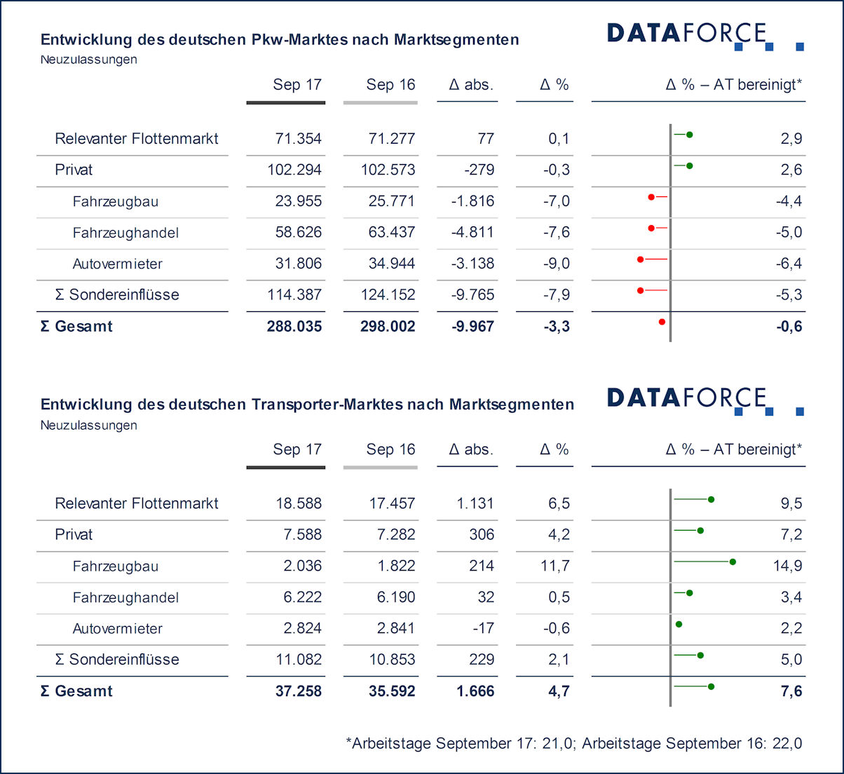 Die Dataforce-Auswertung der Oktober-Neuzulassungen nach Marktsegmenten zeigt eine weiterhin sehr dynamische Marktnachfrage von Flottenbetreibern und Privathaushalten, während der Rückgang der taktischen Zulassungen inzwischen den vierten Monat in Folge anhält. Auch die Talfahrt der Dieselanteile setzt sich weiter fort. …