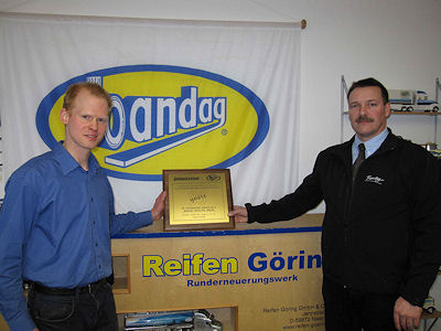 Die in Meschede ansässige Firma Reifen Göring GmbH & Co. KG ist seit 35 Jahren Bandag-Händler, und deswegen ist das Unternehmen Ende des vergangenen Jahres für die langjährige Partnerschaft mit der Auszeichnung „35 years of outstanding service as …