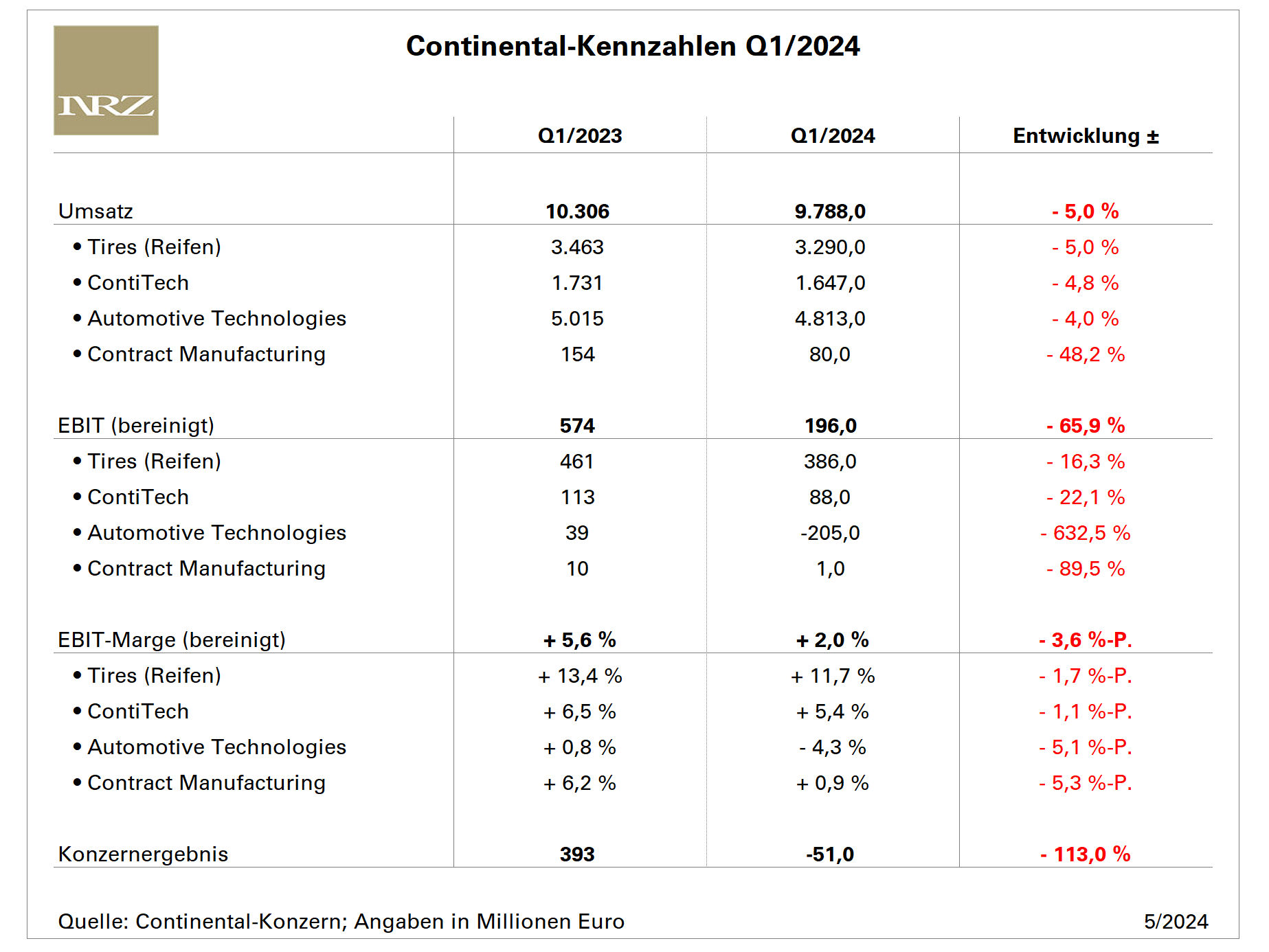 Obwohl Continental im zu Ende gegangenen Geschäftsjahr seine Umsätze konzernweit sowie in den vier Unternehmensbereichen nicht halten konnte, legte das bereinigte EBIT in den beiden größten Bereichen Tires und Automotive zu, sodass der Konzern seine Profitabilität klar steigern …