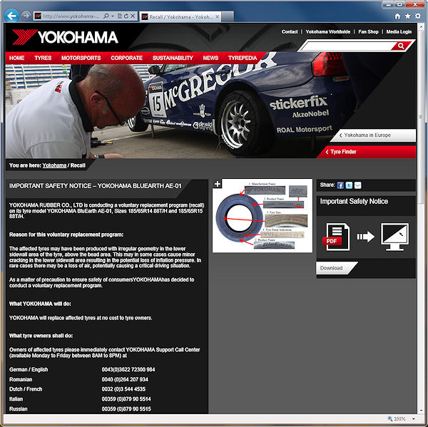 Die Yokohama Rubber Co. Ltd. ruft Reifen des „BluEarth AE-01“ zurück. Betroffen von dem freiwilligen Austauschprogramm des japanischen Reifenherstellers sind allerdings lediglich die beiden Dimensionen 185/65 R14 86T/H und 185/65 R15 88T/H, sofern sie im Produktionszeitraum zwischen Dezember …